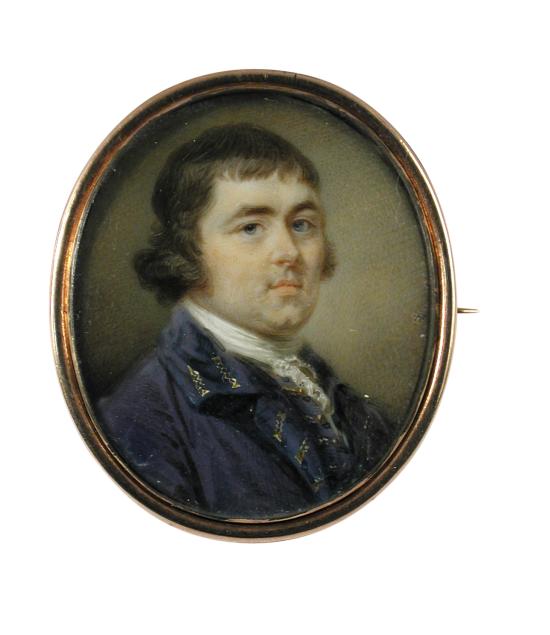 | Portrait of a gentleman, wearing a lilac-coloured coat with gold braided button holes | |