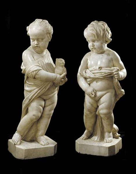 A PAIR OF MARBLE FIGURES OF A BOY AND GIRL