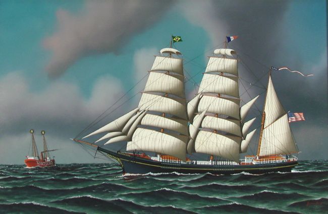The bark F.S. Hampshire with the lightship "Nantucket" off its bow