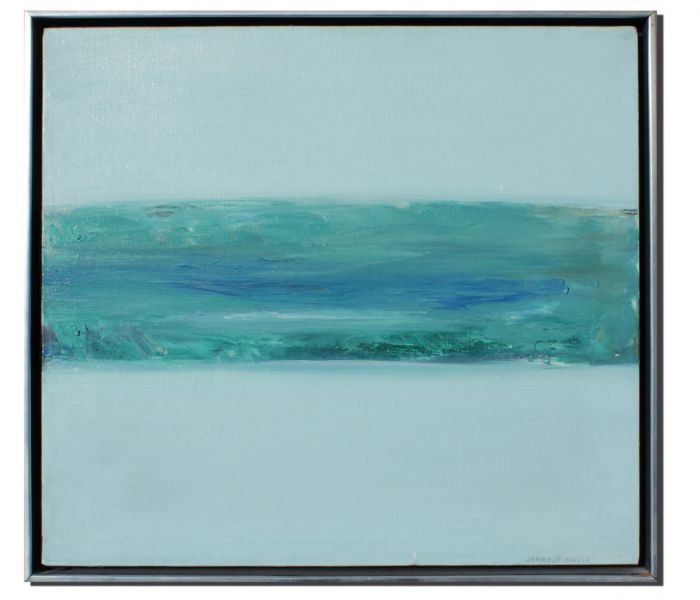 Abstract Composition of Flowing Horizontal Cool Green and Blue Ethereal color Masses