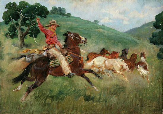 Cowboy Rounding Up Wild Horses