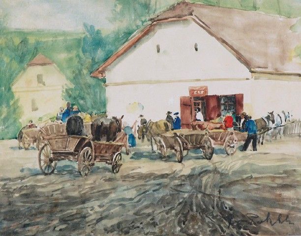 Wozy przed karczmą
