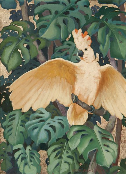 Molucca (sic) Cockatoo or Rosy Cockatoo and Philodendron
