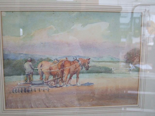 Shire horses harrowing a field