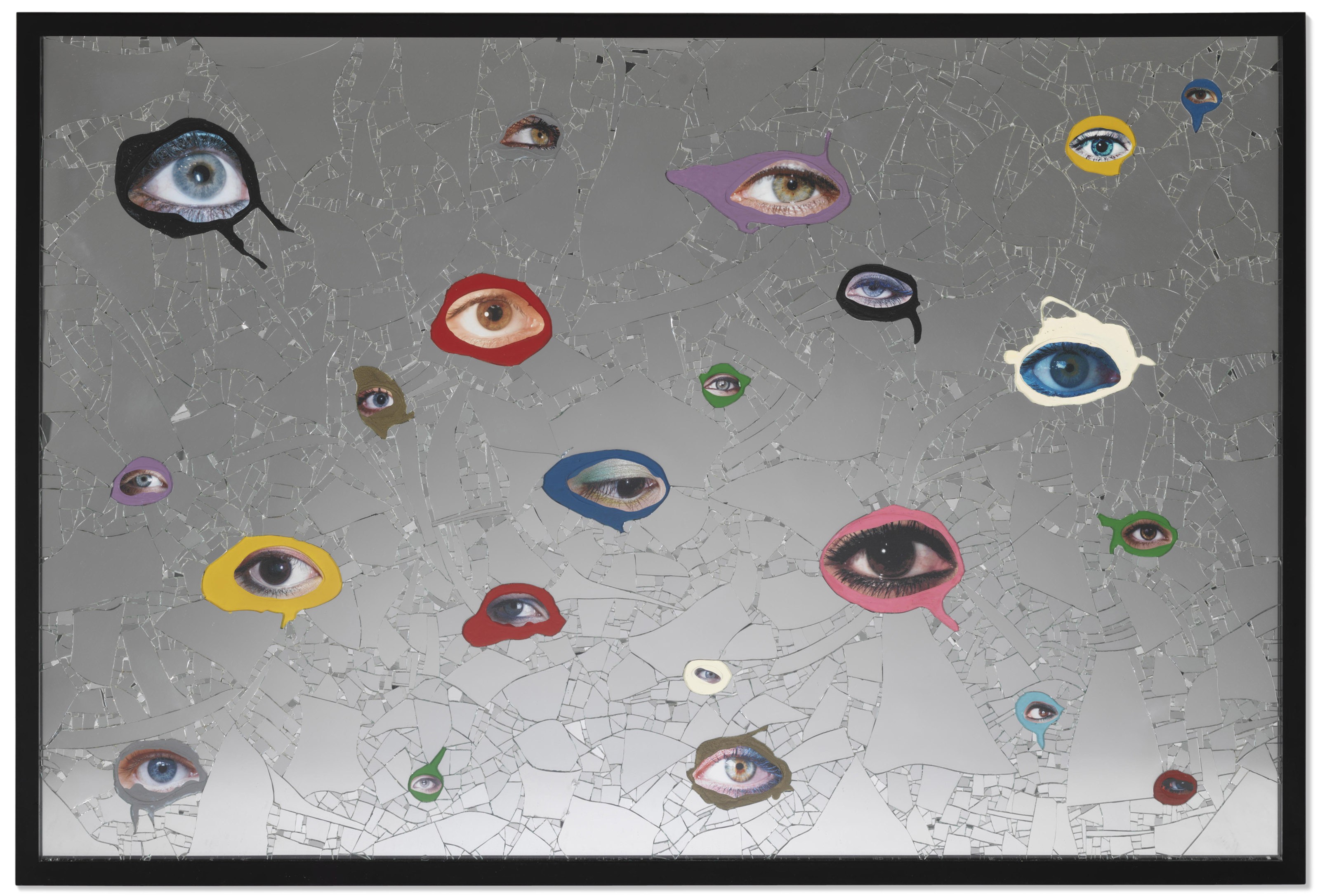 | Enamel enamel, photographic print collage and mirror in artist's frame | |