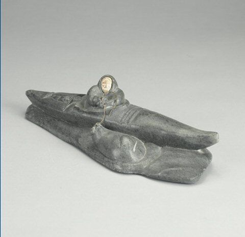 HUNTER IN KAYAK PULLING AWALRUS
