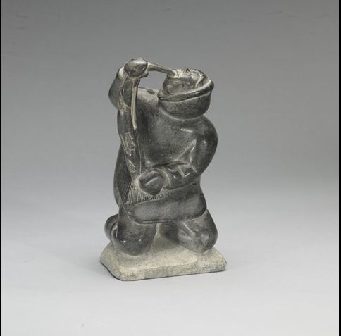 KNEELING INUK EATING A FISH