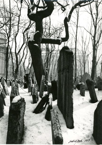 Le cimetière juif de Prague sous la neige