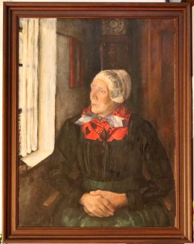 Zittende Veluwse vrouw in de Elspeetse klederdracht