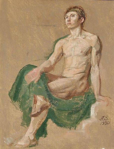 Nude male in a green cloth.