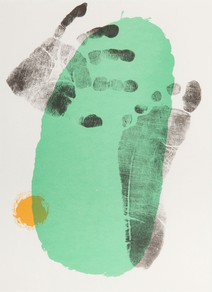 | Foot and hand on green background | |