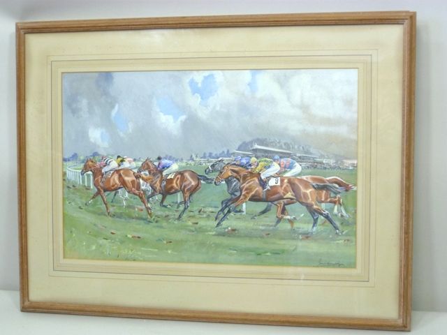 Epsom Derby or Sandown Races, racing scenes, one with horses jumping