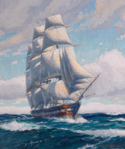 The frigate U.S.S. Constitution at sea