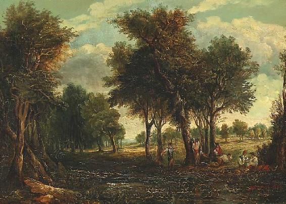 Forest glade with farmers