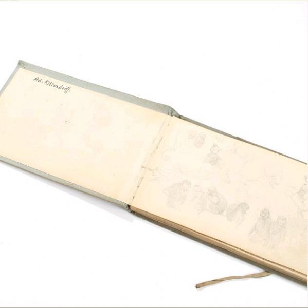 | Sketchbook with drawings in lead and watercolours of people and animals | |