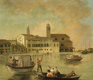 | Venice, a view of San Biagio and the church of San Biagio e Cataldo on the Giudecca with elegant figures in a burchiello | |