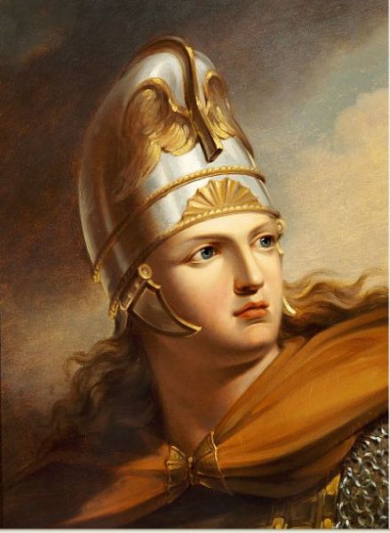 Warrior with a decorated helmet