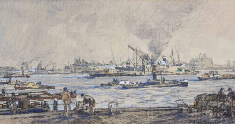 | Bedrijvigheid in de haven vanaf de Willemskade met op de achtergrond hotel New York. | |