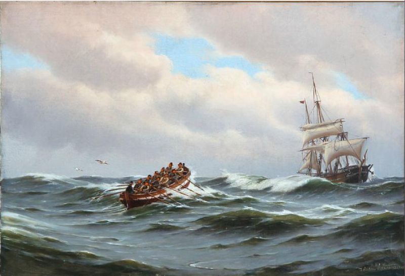 A lifeboat heading out to a ship