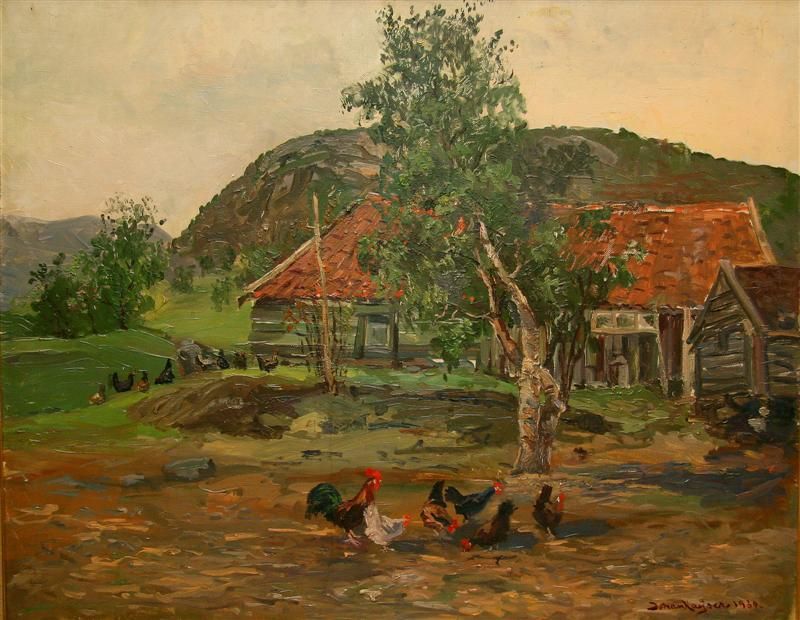 Gårdstun med høns