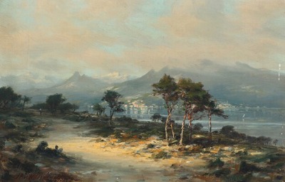 A Southern landscape overlooking a town. Signed and dated J.P. Wildenradt, 1891. Oil on canvas. 23.5×37 cm. | |