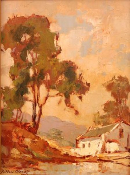 Landscape with whitewashed church beside a lake in the shade of a tree