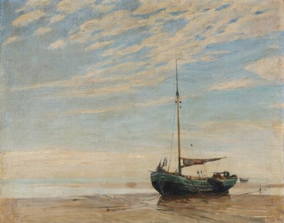 | Beach scene from the island of Fanø with a fishingboat at low tide | |