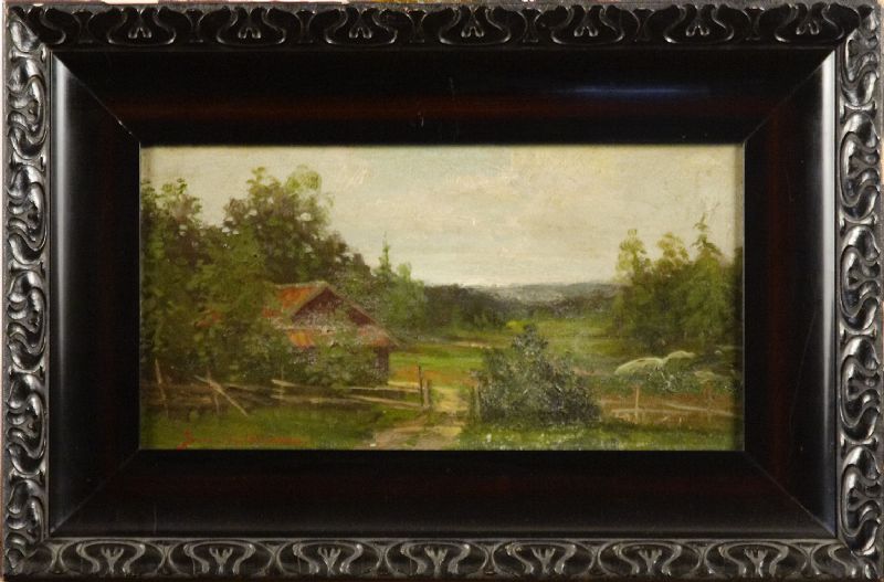 Landskap med stuga