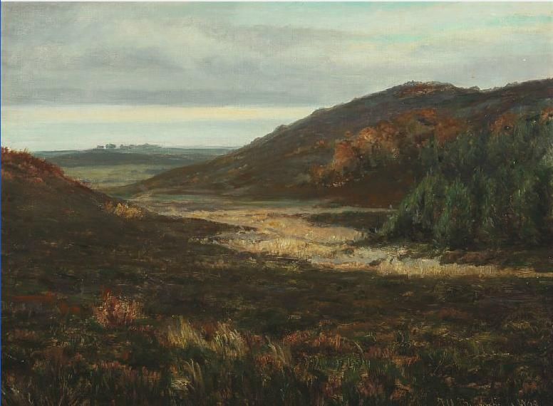 Hilly heather landscape.