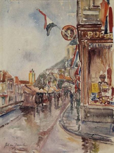 | Dutch street decorated with flags on occasion of the coronation of Princess Juliana | |