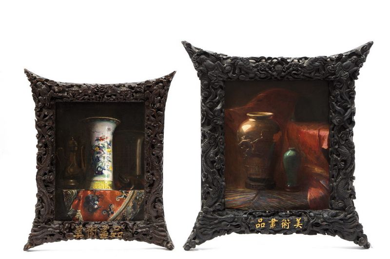 Twee stillevens met Chinese vazen