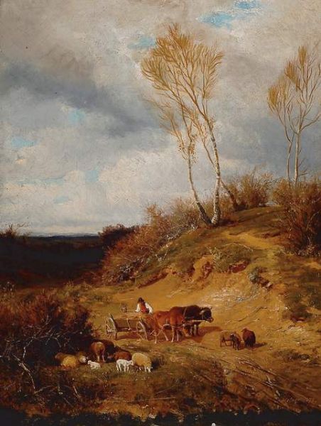 | tudium an der Akademie München bei Piloty, hier: Bauer mit seinem Ochsengespann in einer Sandgrube, um ihn herum ruhende Schafe, | |