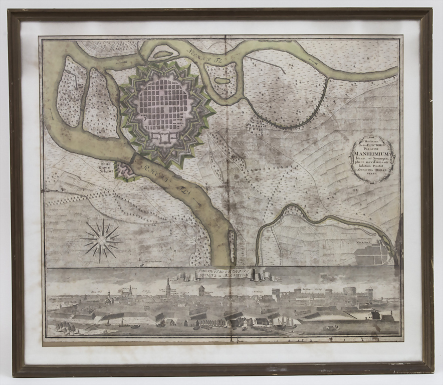 | 'Hodierna Sedes Electoris Palatini Manheimium' und 'Prospect der Churf. Residenz St. Manheim'/ A historical map of Mannheim, Nür | |