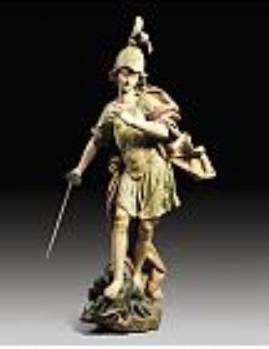 A POLYCHROME WOOD FIGURE OF ST.GEORGE OR ST.MICHAEL