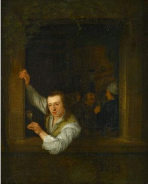 GENTLEMAN WITH A DRINK AT A CASEMENT