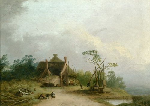 Flußlandschafte mit einer Fischerhütte