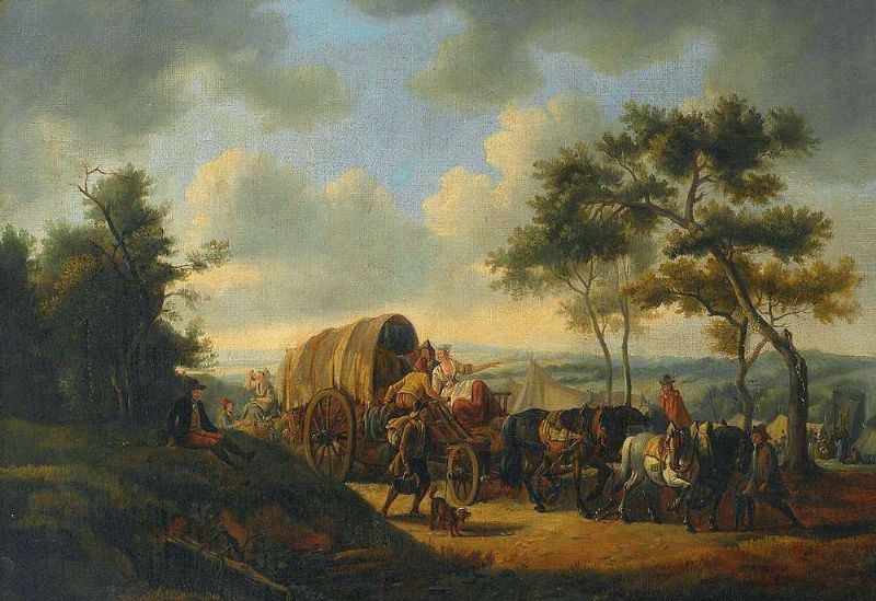 Marketender und Schausteller auf dem Weg zu einem Markt