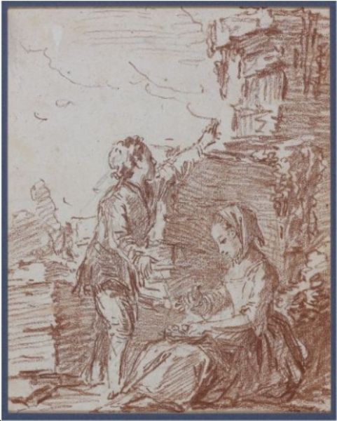 Painting Red chalk over traces of black pencil