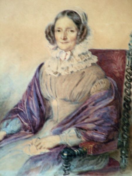 Portrait of a lady, seated three-quarter-length in a mauve cape
