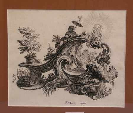 Astas - ein kleiner Mohr mit Sonnenschirm über Rocaille-Ornamente - Allegorie des Sommers