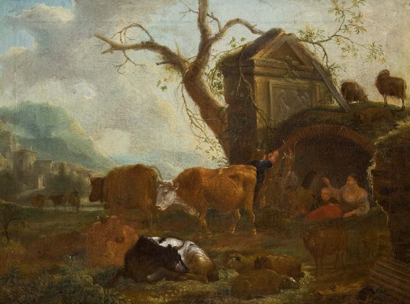Pendant "Hirten und Weidevieh" in romantischer Landschaft