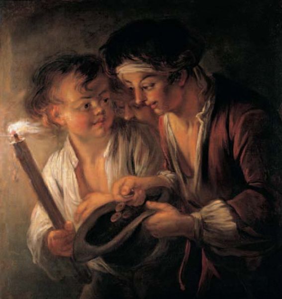 DREI BUBEN ZÄHLEN IHR GELD BEI FACKELLICHT