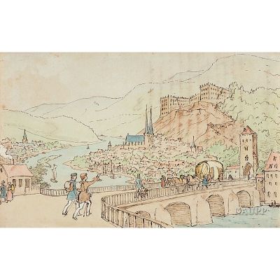 Skizzenhafte Ansicht von Heidelberg mit der Alten Brücke