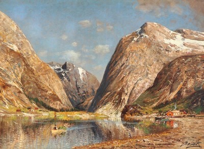 Calm autumn day at a fiord, Norway. Signed J. Holmstedt. Oil on canvas. 74×100 cm. | |