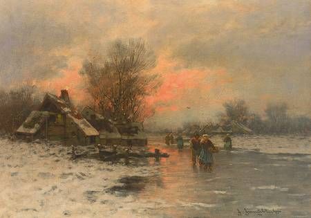 Abendliche Winterlandschaft mit zugefrorenem Flusslauf