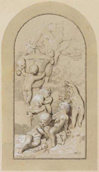 | Sketch for a wall painting of putti gathering flowers. | |