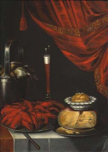 | Banketje mit Flusskrebsen, Singvögeln, Käse und einem Stangenglas | |