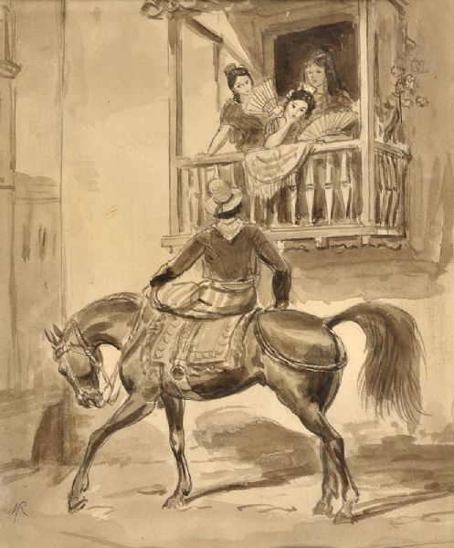 DAMITAS EN UN BALCON Y GAUCHO A CABALLO