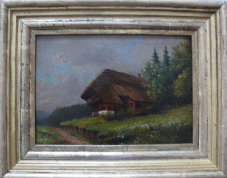 ''Schwarzwaldhaus'' am Waldrand mit blühender Wiese