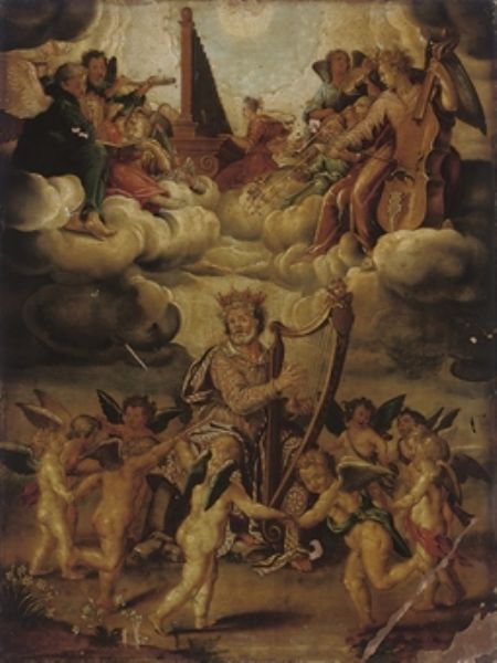 King David playing the harp with putti dancing, and Saint Cecilia at the organ